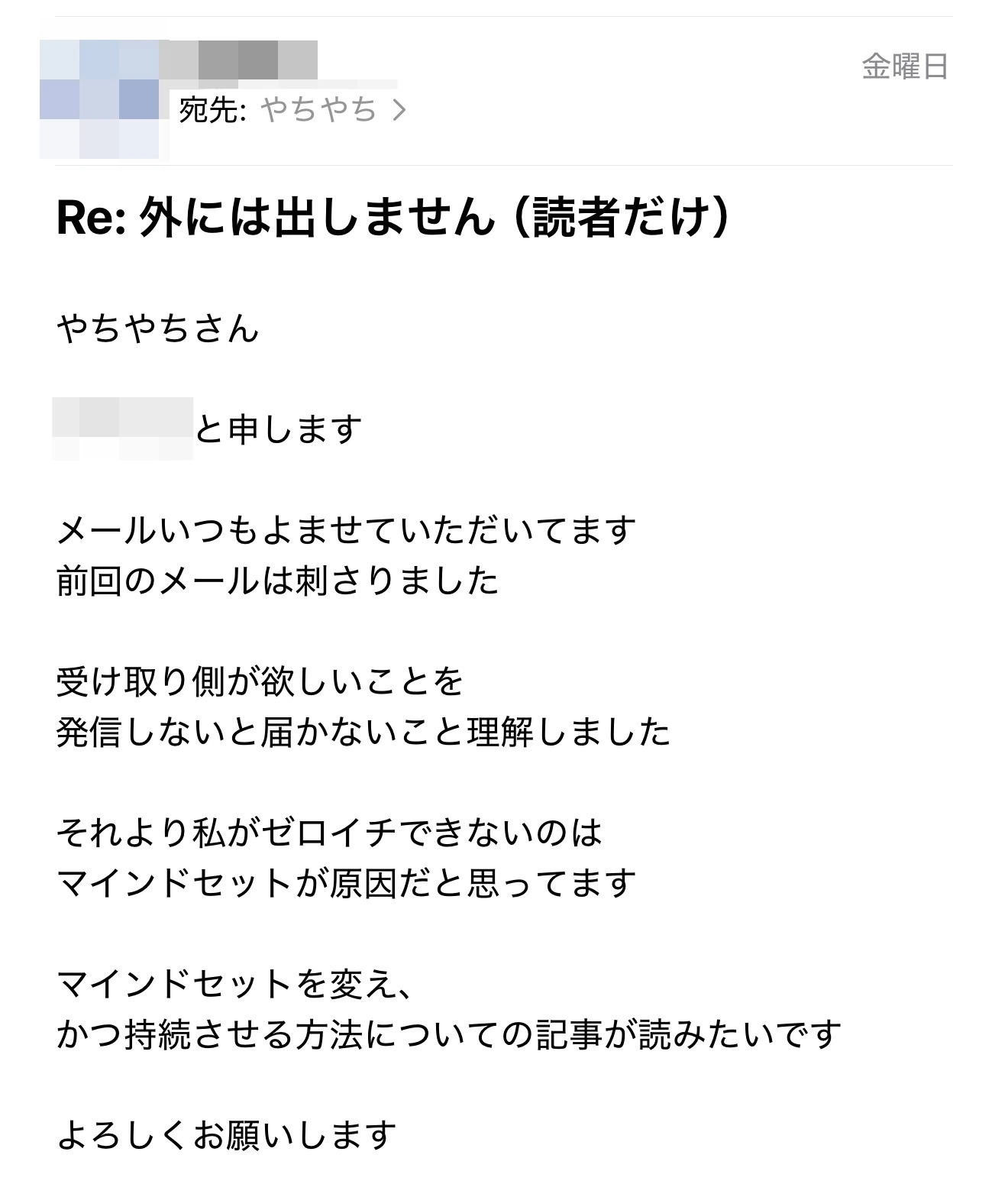 僕のメルマガ読者から届いた